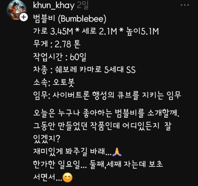 [유머] 60일 만에 범블비 만든사람