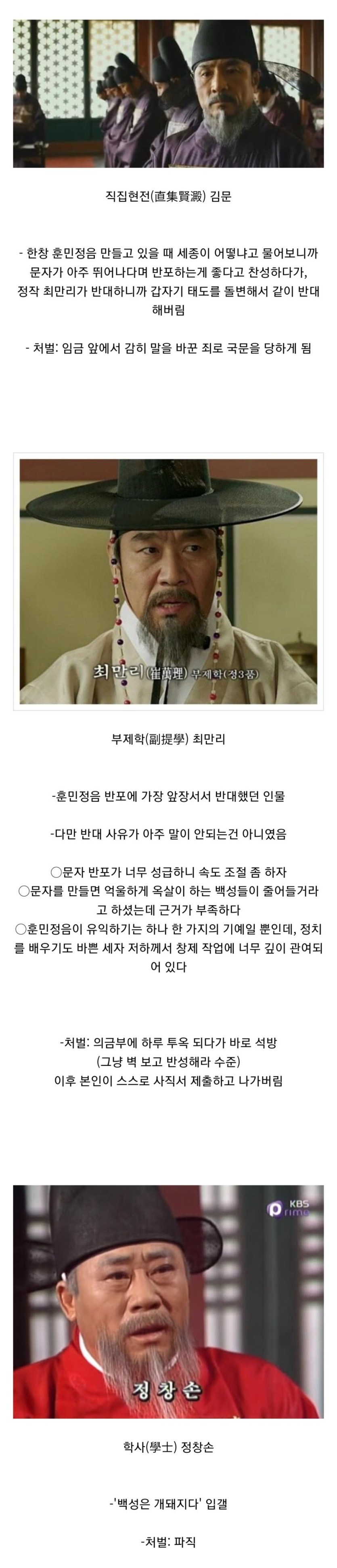 한글 창제 당시 세종에게 반대하던 신하들이 받은 처벌