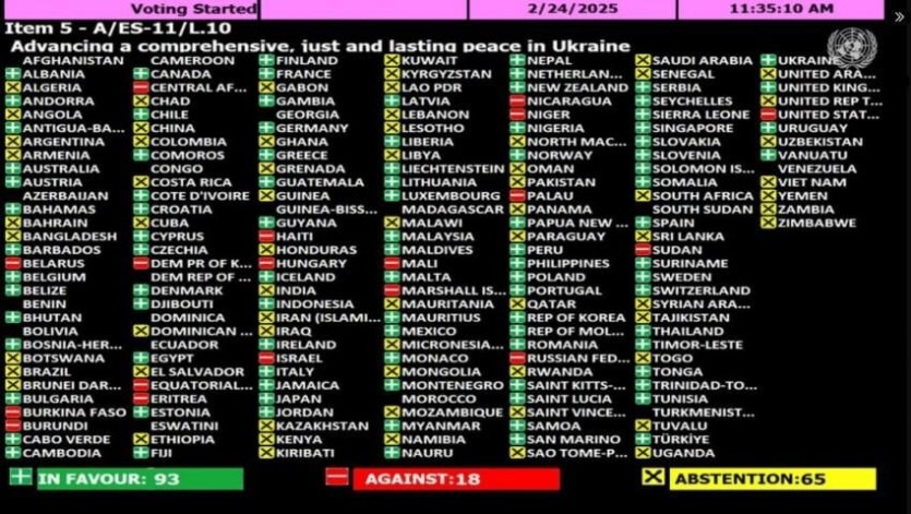 속보) 우크라이나 유엔결의안 표결결과.jpg rh1 0 129 0 2025.02.25 10:00 전쟁의 침공원인을 러시아로 한다는것에 미국과 러시아가 반발그 결과 찬성: 독일 ,영국, 프랑스, 캐나다등 93개국기권: 65개국반대: 미국, 러시아, 이스라엘 , 북한, 벨라루스 등 18개국이스라엘은 미국 따라 반대투표 0