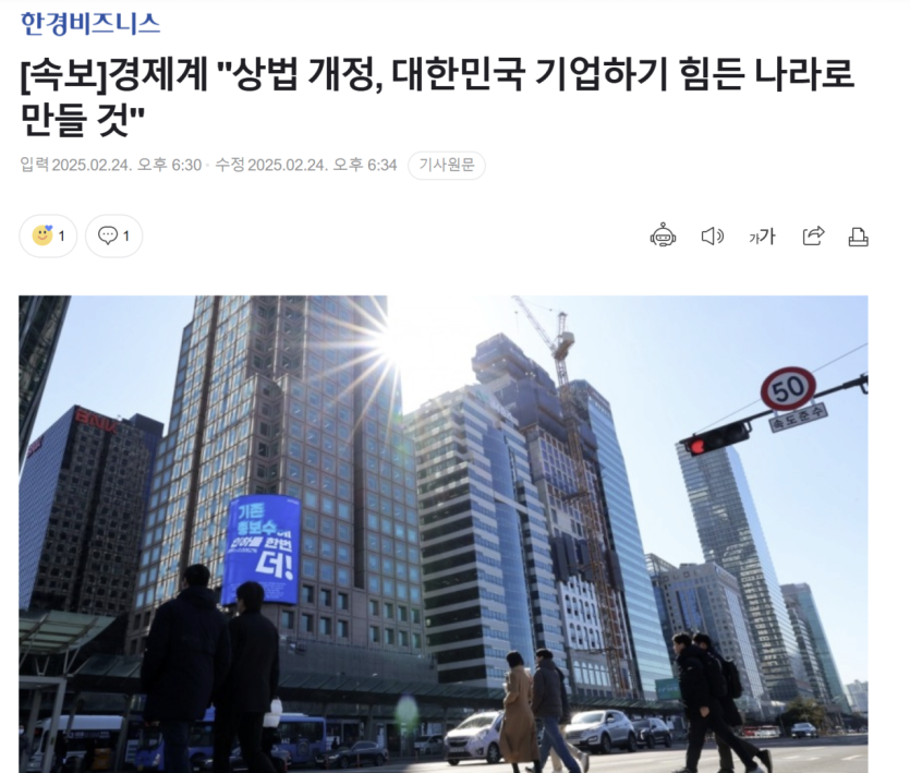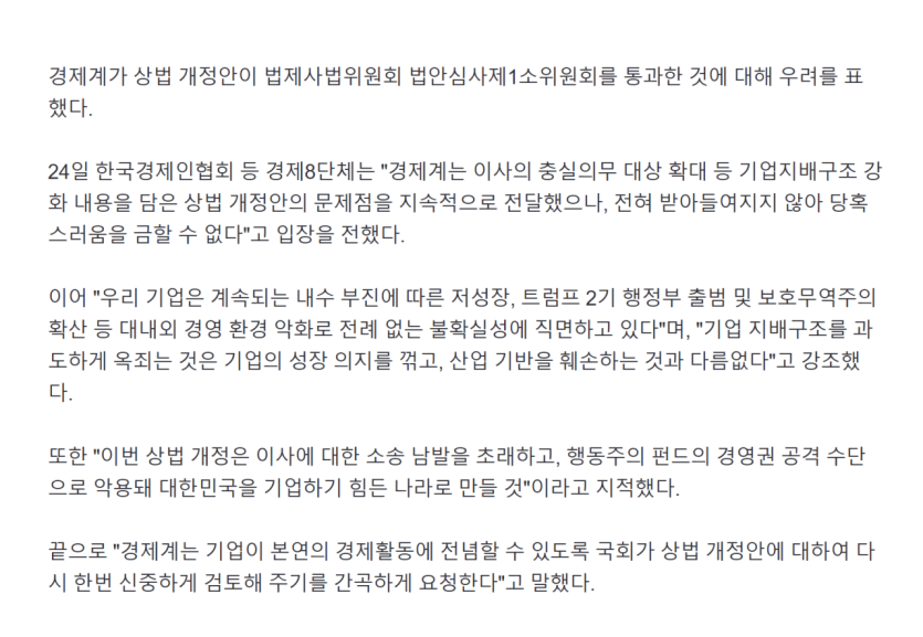 [속보]경제계 "상법 개정, 대한민국 기업하기 힘든 나라로 만들 것"
