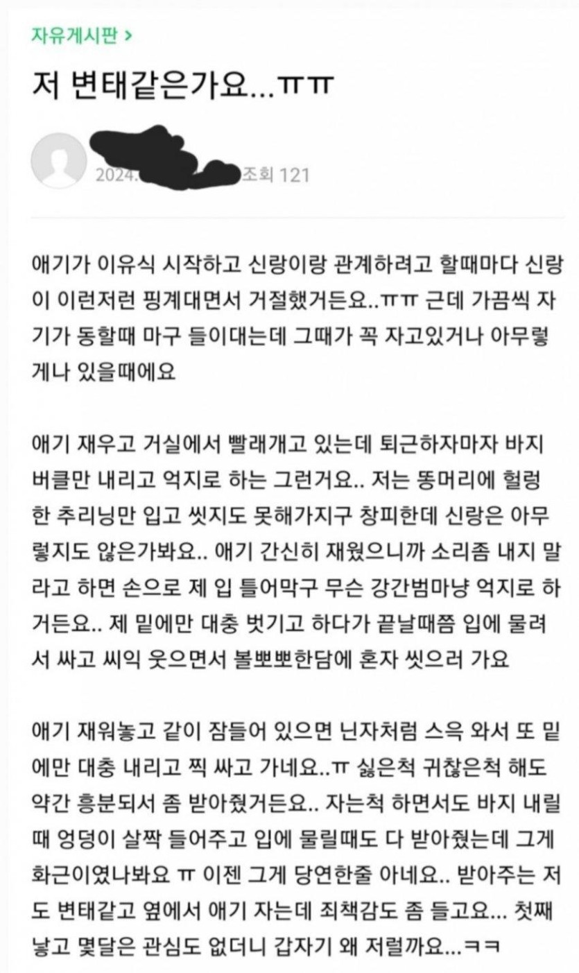 ㅇㅎ썰)강제로 하는게 좋은 애엄마들