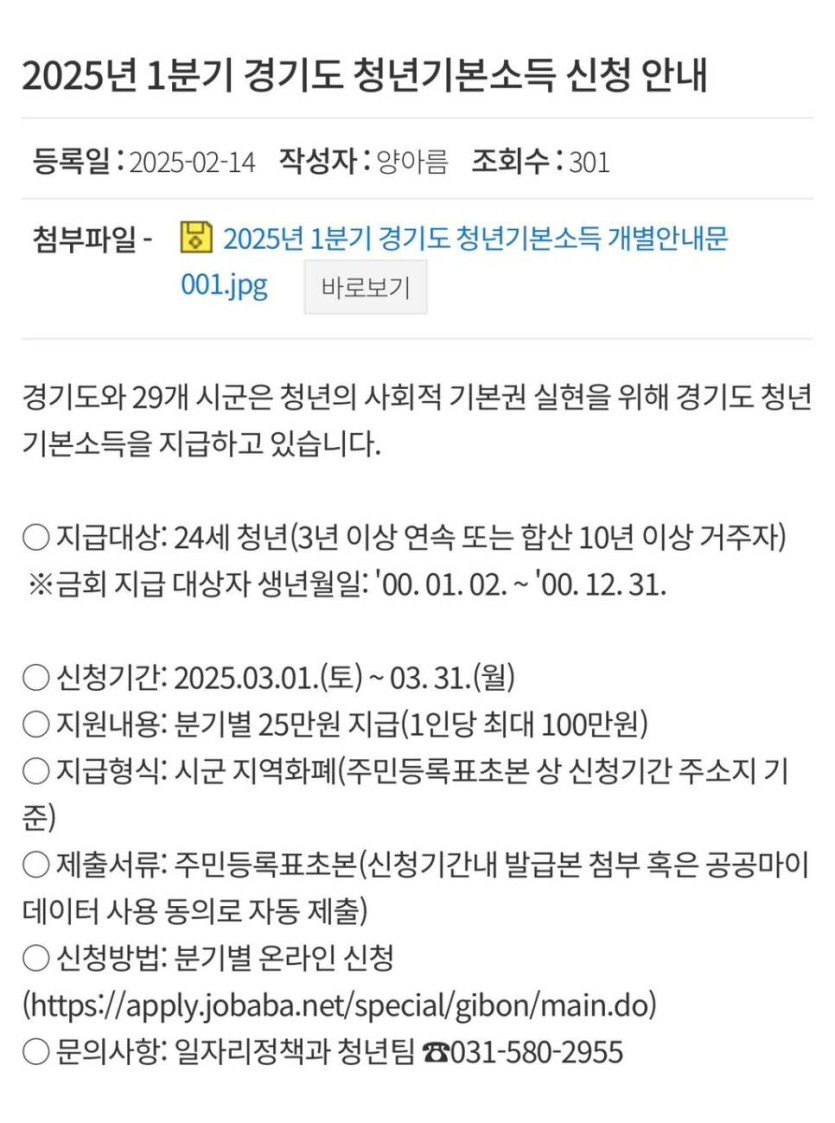 경기도 거주 만24세 00년생 대상) 100만원 지원금