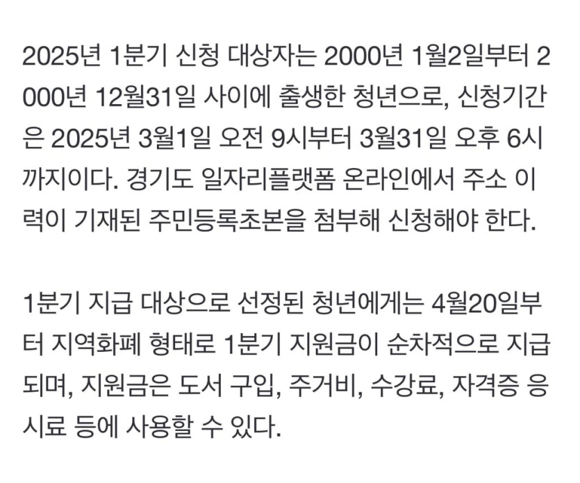 경기도 거주 만24세 00년생 대상) 100만원 지원금