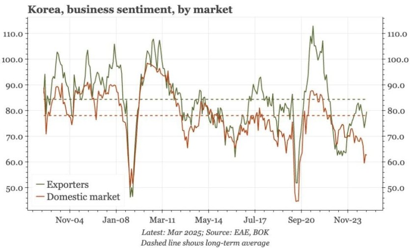 현재 대한민국 내수경제 근황...jpg rh1 0 81 0 2025.02.22 22:30 초록색은 수출, 갈색은 내수.2008년 서브프라임 모기지, 2020년 코로나때 수준으로 떨어지려함... 0