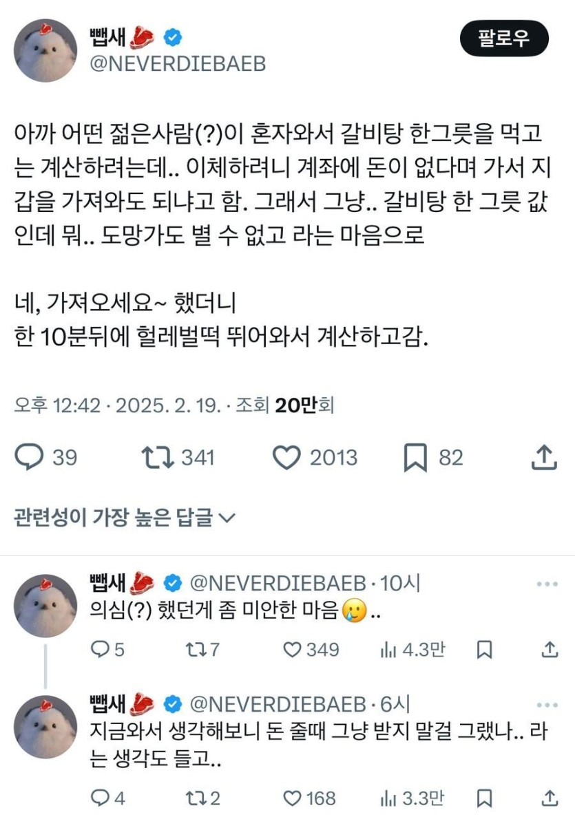 갈비탕 먹고 돈이 없다며 지갑 가져온다던 청년.jpg