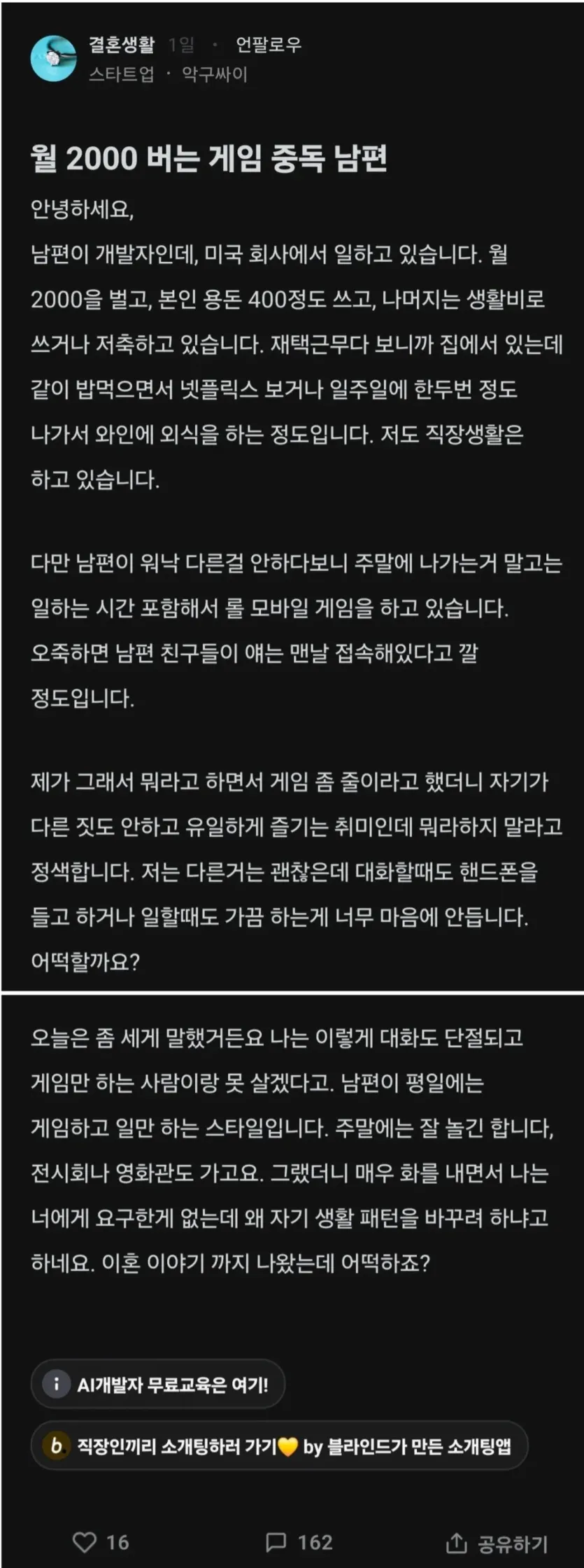 월 2,000 버는 게임중독 남편