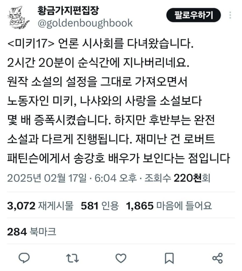 황금가지 편집장의 미키 17 언론 시사회 후기.JPG
