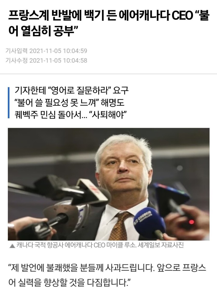 이외에도 캐나다국적기 항공사 CEO도 프랑스어 못하면 욕먹음