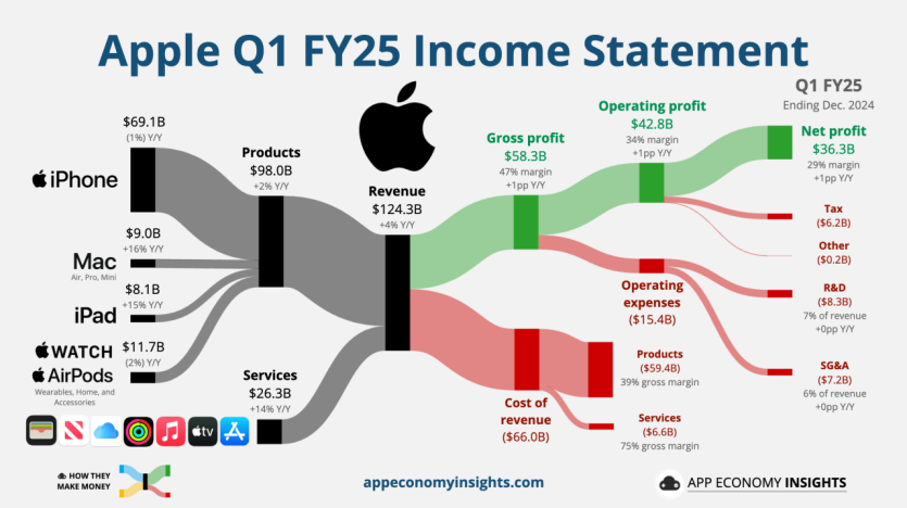 - 매출 1243억 달러 (YoY +4%p) 로 기록적인 매출 달성