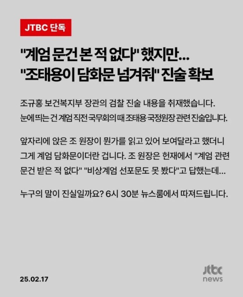 조규홍 복지부장관, 국정원장이 헌재에서 거짓말을 했다