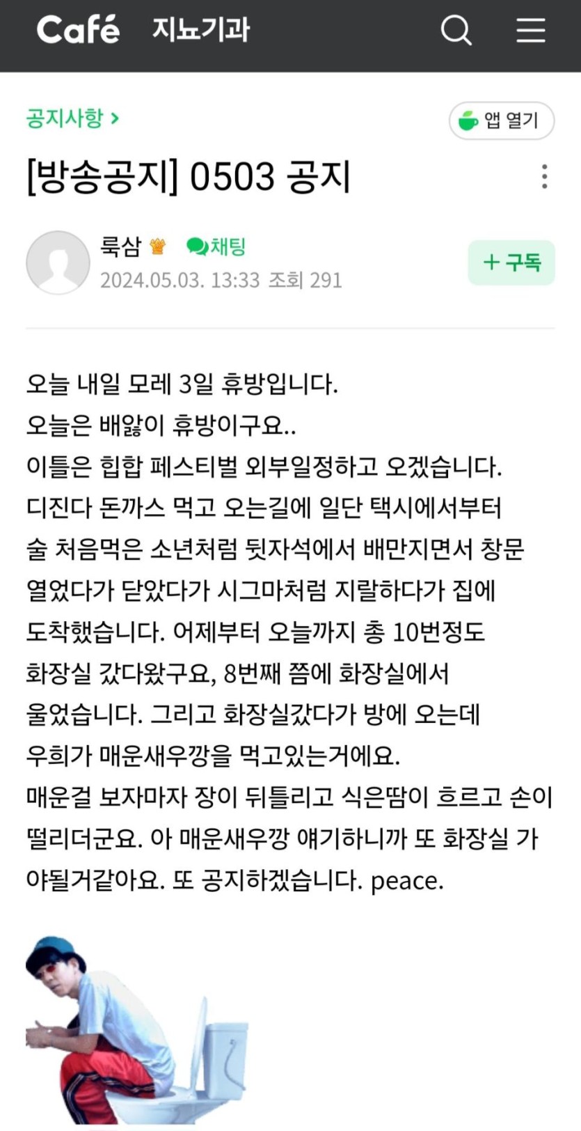 벌칙으로 매운돈까스 먹은 스트리머의 휴방공지 겸 후기.jpg