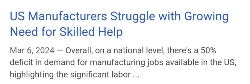 [ 숙련공 부족 비율이 50% 에 달하는 미국 제조업 ]