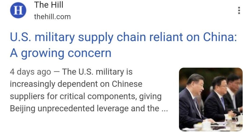 [ 미군의 중국 공급망 의존도 증가중 ]