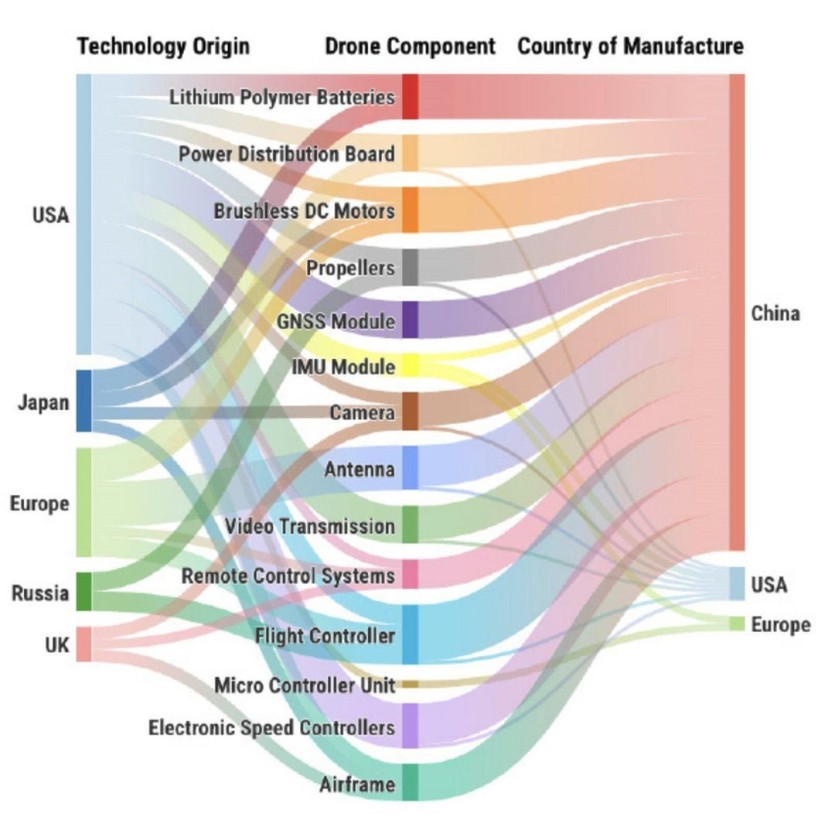 [ 드론 기술개발국 vs 제조국: 중국이 90% 이상 제조 ]