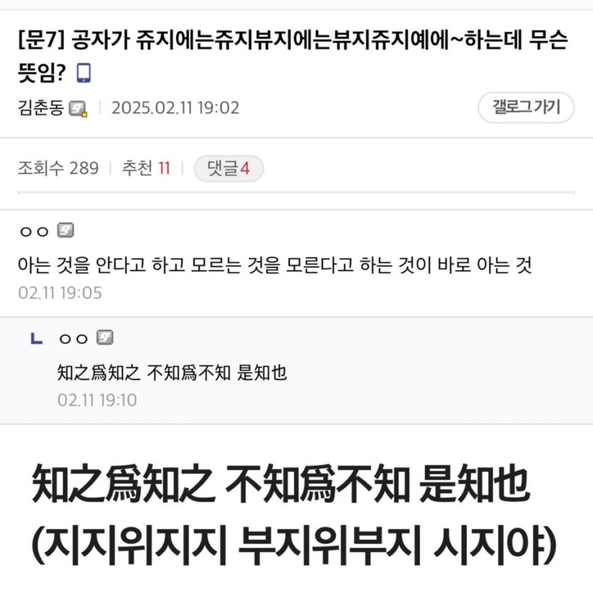 공자왈: 쥬지에는쥬지뷰지에는뷰지쥬지예에