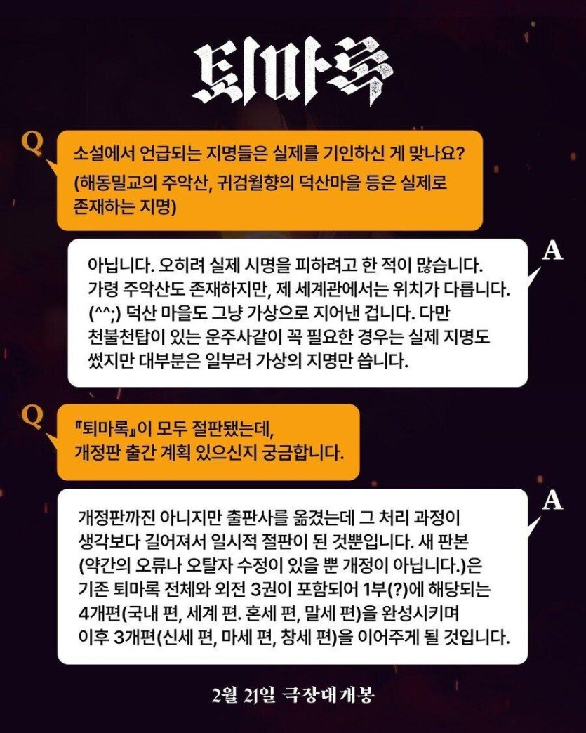 퇴마록 소설 2부 연재 예정