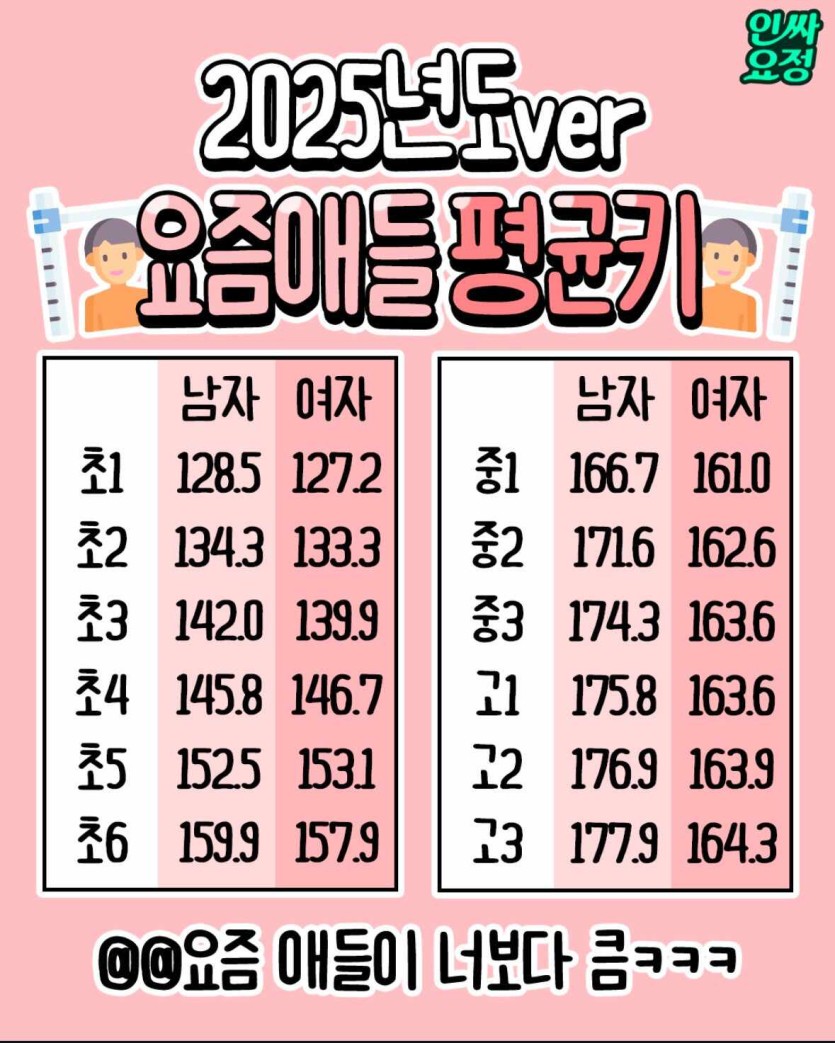 요즘 애들 키 ㄷㄷㄷㄷ