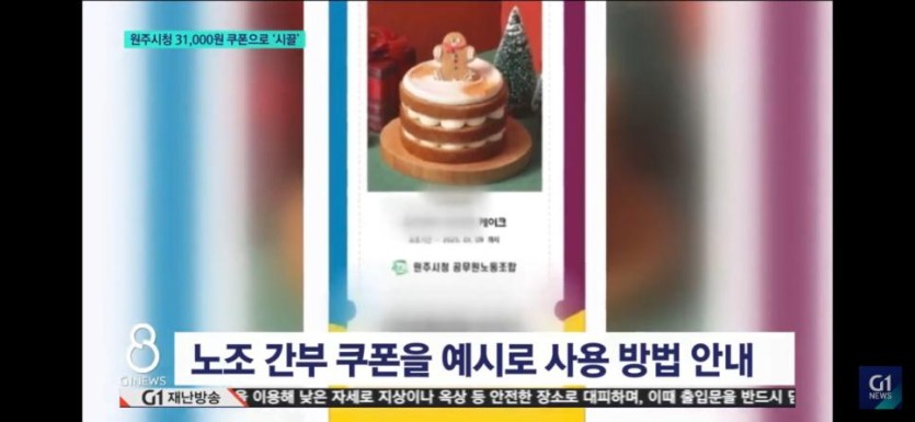 연말을 맞아 노조가 준비한 선물로 3만 천 원짜리 케이크로 바꿀 수 있는 쿠폰이었습니다.