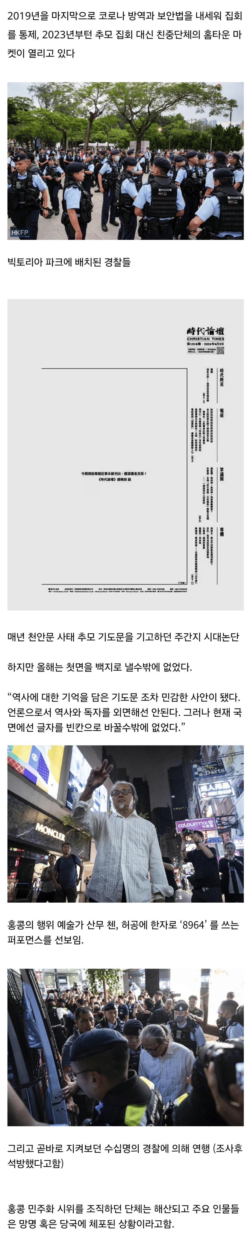 천안문을 언급하면 잡혀가는 공산화된 홍콩