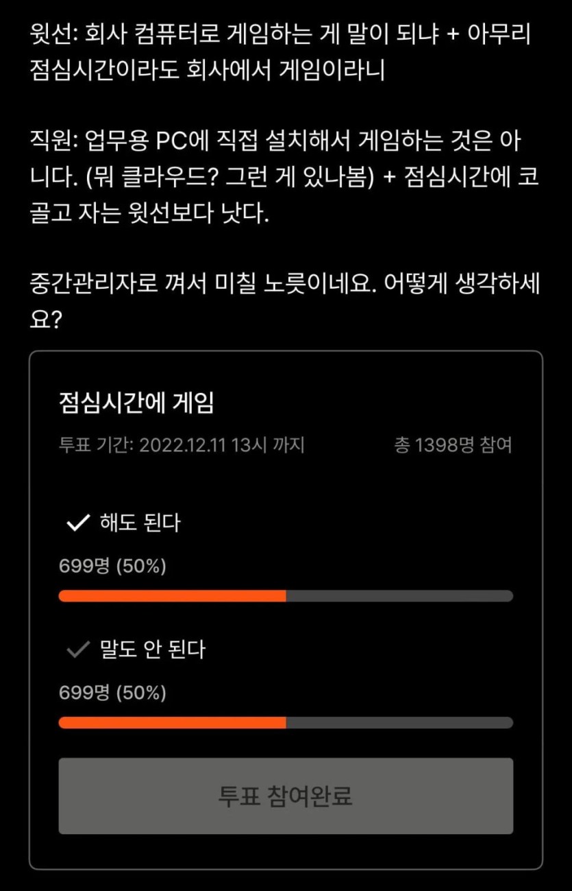 점심시간 회사PC로 게임하는거에 대한 의견찬반
