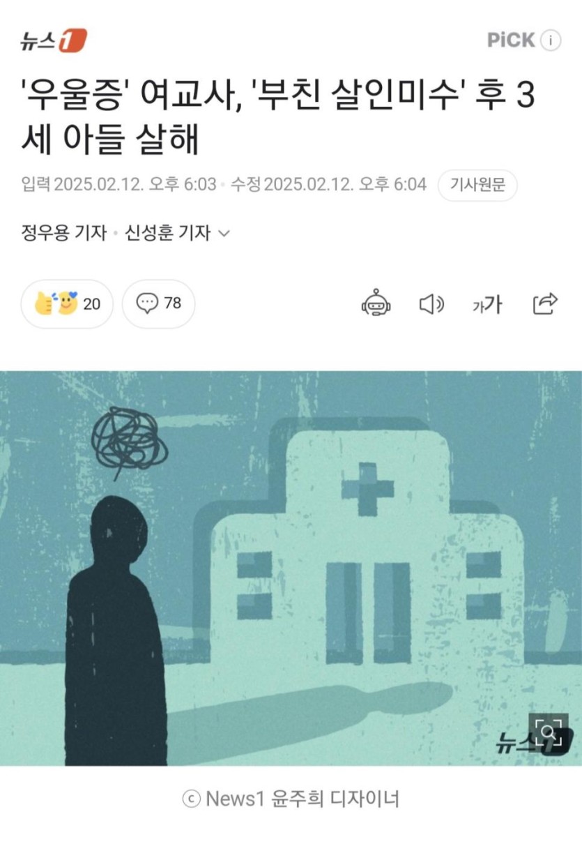 [사회] '우울증' 여교사, '부친 살인미수' 후 3세 아들 살해