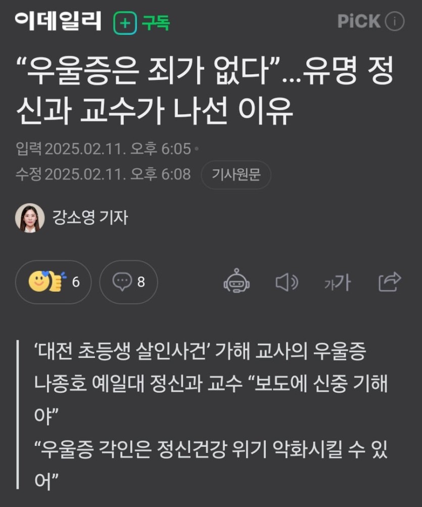 교사살인... 정신과교수 "우울증은 죄가없다"
