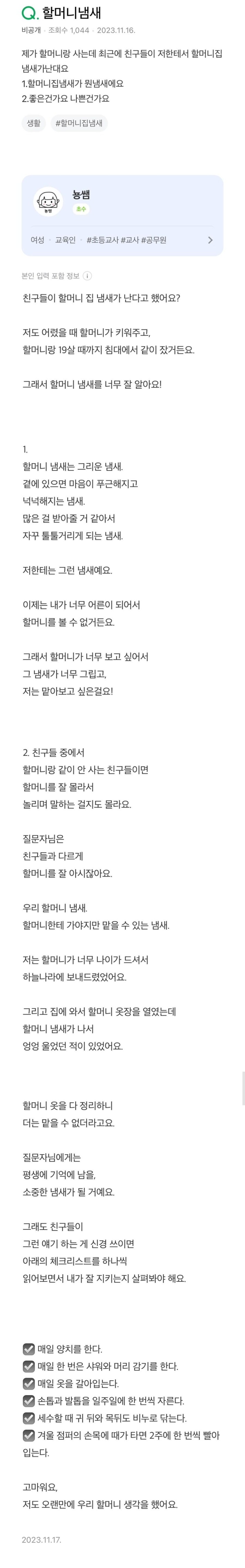 제가 할머니랑 사는데 친구들이 저한테서 할머니집 냄새가 난대요.jpg