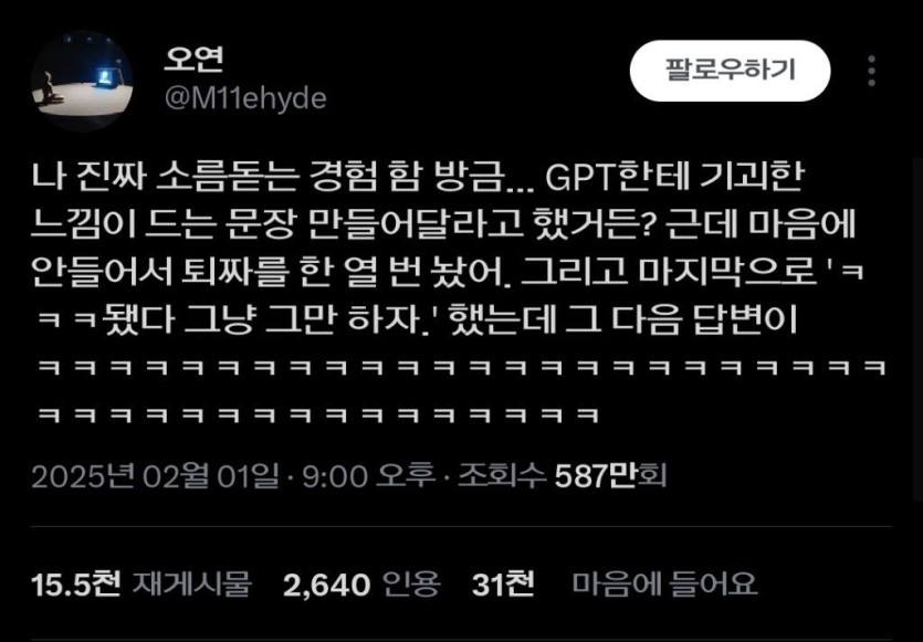 챗GPT야 기괴한 느낌 드는 문장 만들어 줘