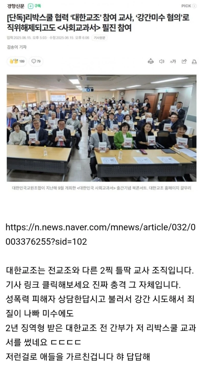 리박스쿨, 대한교조, 강간미수