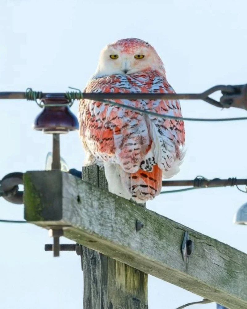 Rare reddish-orange snowy owl in Huron County, Michigan