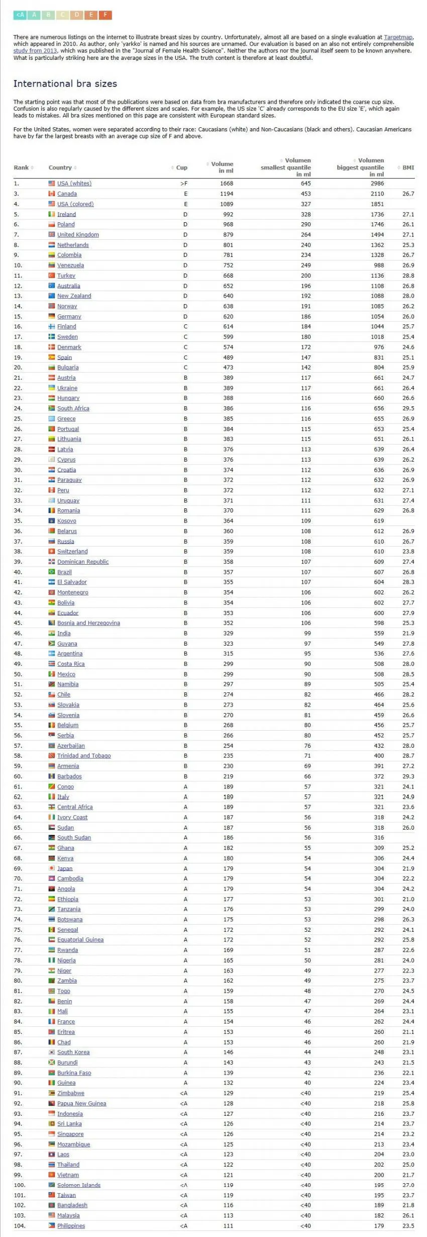 즉 가슴 크기가 인도보다 작고 일본이랑 비등하지만 인도, 일본보다 평균적으로 더 뚱뚱함.