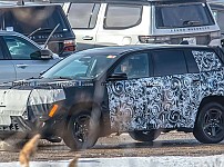 스파이샷 보니까 와고니어 S랑 디자인 엄청 비슷해 보이네요.측면 보면 높고 직선적인 벨트라인에 창문은 좁고, 전형적인 지프 특징인 사각 휠아치도 있어요. 전면부 확대해보면 위…