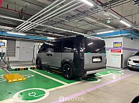 코엑스 주차장에서 충전중인 PV5 테스트카랍니다근데 주차장 바닥에 있는 노란 건 뭘까요? 혹시 무선충전?블로터펌