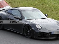 뉘르에서 테스트 중인 911 테스트카입니다. 네모난 쿼드 배기구 달린 거 보면 터보인데 뭔가 이상합니다일단 뒷휠아치에 있어야 할 에어 인테이크가 위장막으로 가려…
