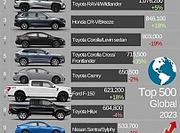 지난해 전세계 가장 많이 판매된 차 톱 100