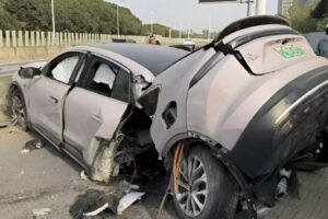 중국 상하이 외곽에서 이달 1일 발생한 니오(Nio) EC6 전기 SUV 쿠페 모델의 고속 충돌 사고가 현지에서 큰 관심을 모으고 있다. 사고 차량은 도로변 콘크리트 구조물과 강한 충돌을 일으키며 후미가 객실과 분리될 정도로 심각한 파손을 겪었으나, 차량 탑승자 두 명은 생명에는 지장이 없는 부상을 입고 구조됐다.