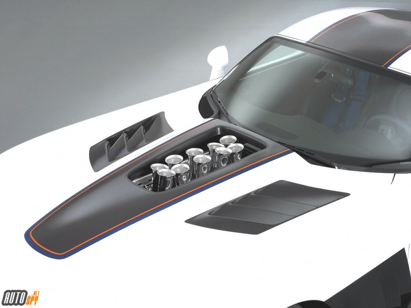 보닛 중앙의 트럼펫 스타일 독립식 트로틀 포트와 레이싱 타입 보디 페인팅으로 시각적 즐거움을 제공하며 맥라렌 레드와 바이퍼 블루 색상의 라인으로 포인트를 주었다.