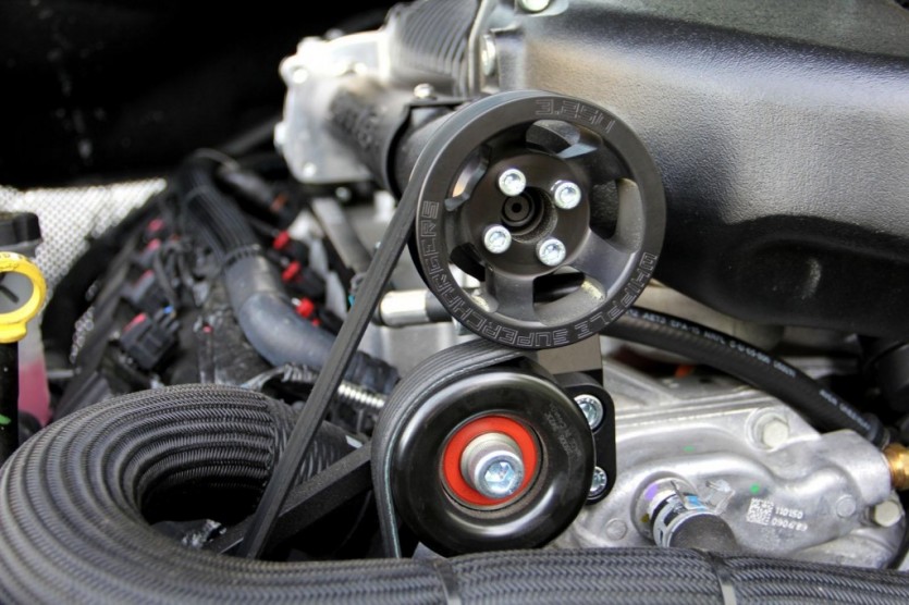 변신의 시작은 V8 6.4리터 헤미 엔진에 콤프레셔를 붙이는 것. 자연흡기 상태에선 고출력에 한계가 있기 때문에 과급장치를 더해 최고출력 708마력을 끌어냈다. ECU와 냉각계는 물론이고 피스톤과 크랭크 샤프트까지 상당수를 고출력에 맞춰 개량했다.