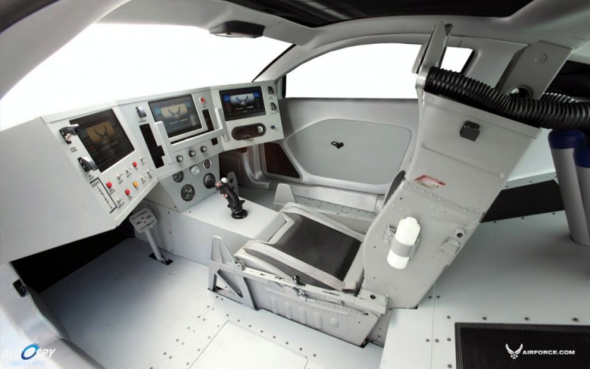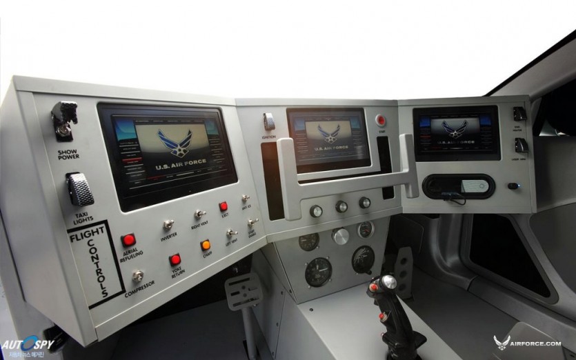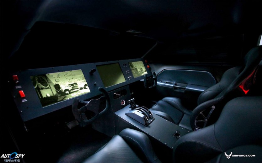 시저스 타입의 도어로 비행기를 형상화한 X-1의 디자인은 전위적이지만 매력적인지는 의문이다. 다소 엉성한 외형보다 눈에 들어오는 것은 전투기 콕핏을 그대로 가져온 실내. 머스탱의 모든 시트를 걷어내고 가운데에 전투기 이젝션 시트(사고시에 튀어 올라 비상탈출이 가능하다)를 달았다. 어두워서 시야 확보가 어려운 상황에서도 3개의 모니터를 통해 다양한 정보를 얻을 수 있다. 스티어링 휠은 조이스틱으로 대체되었고 센터콘솔 좌우의 페달을 이용해 가속하거나 감속할 수 있다. 보닛 아래에는 포드 레이싱이 튜닝한 500마력 4.6L 엔진과 변속기를 얹었다.