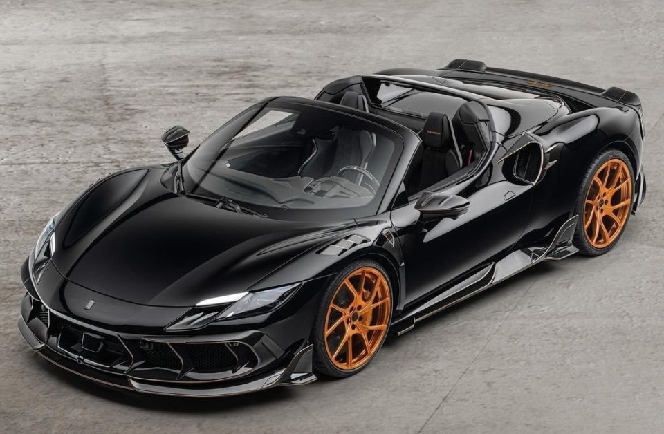 이 특별한 이탈리안 슈퍼카에는 전면, 측면 및 후면에 일반적인 화려한 추가 기능이 있습니다. 사이드 블레이드가 있는 새로운 에이프런, 사이드 스커트 부착물, 펜더 트림, 새로운 디퓨저, 그리고 몇 개의 만소리 로고가 있습니다. 지배적인 색상은 블랙이며, 브론즈 애프터마켓 휠이 만소리 브랜드 브레이크 캘리퍼 주위를 돕니다.