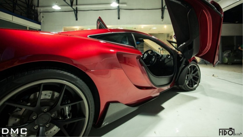 럭셔리 전문 튜너 DMC가 맥라렌 MP4-12C를 손봤다. 지난해 선보인 벨로시타의 진화형으로 ‘DMC 맥라렌 HS-12 벨로시타(Velocita) SE’란 이름을 달았다. 블랙이 메인이었던 벨로시타에 비해 이번 컨셉의 보디는 강렬한 에메랄드 레드로 화려하게 치장했다. 범퍼 아래로 지나는 공기를 모두 훑을 것만 같은 언더 스포일러를 포함한 모든 에어로파츠들은 카본 파이버 소재로 만들었으며 배기파이프는 티타늄으로 만들었다.
