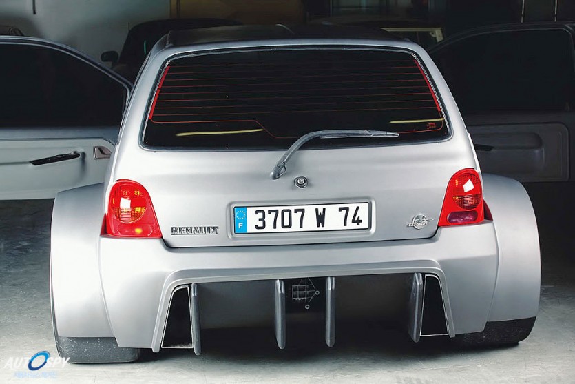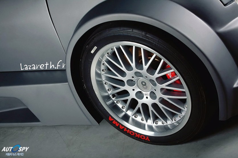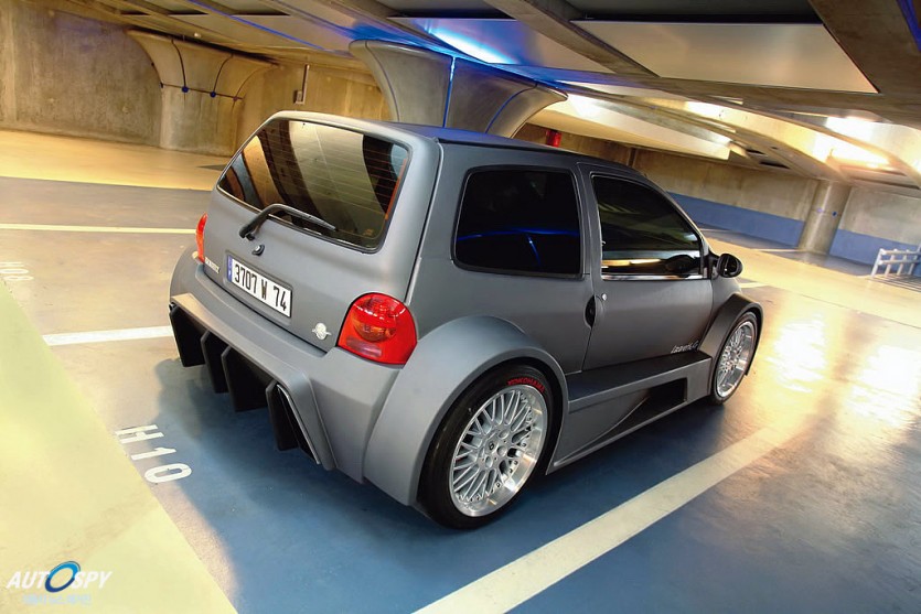 르노의 소형차 트윙고가 괴물로? 프랑스 모터사이클 빌더 라자레쓰(Lazareth)가 이 괴물 프로젝트를 진행했다. 트윙고 트로피(Twingo Trophy)라 이름 붙은 커스텀 모델은 트윙고의 뒷자리를 떼어낸 자리에 새 서브프레임을 만들고 랜드로버 레인지로버 180마력 V8 3.5L 엔진을 얹었다. 엔진 출력은 요코하마 18인치 슬릭타이어로 받는다. 트레드를 넓히고 펜더를 확장해 보디를 키웠지만 오리지널 트윙고의 깜찍한 디자인은 그대로 남아있다.