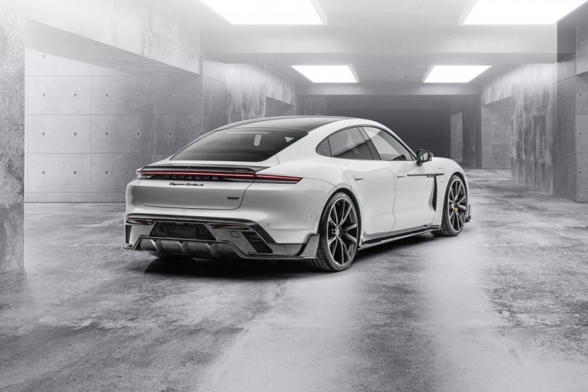 타이 칸의 후방에도 많은 변화가있었습니다. 예를 들어 탄소 섬유 립 스포일러와 독특한 디퓨저가있는 새 범퍼가 있습니다.