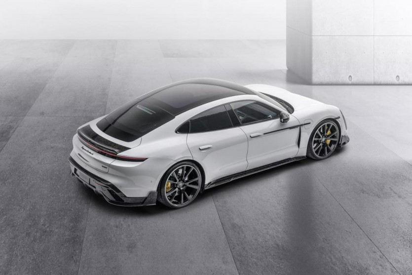 변경은 헤드 라이트 주변과 범퍼의 통풍구를 가로 지르는 단조 탄소 액센트뿐만 아니라 경량 단조 탄소 섬유로 만든 독특한 스플리터의 장착으로 프런트 엔드에서 시작됩니다. Mansory는 독특한 사이드 스커트, 윙 미러 및 프론트 도어를 따라 이어지는 카본 액센트와 함께 올 일렉트릭 타이 칸의 측면을 따라 카본 테마를 계속했습니다.
