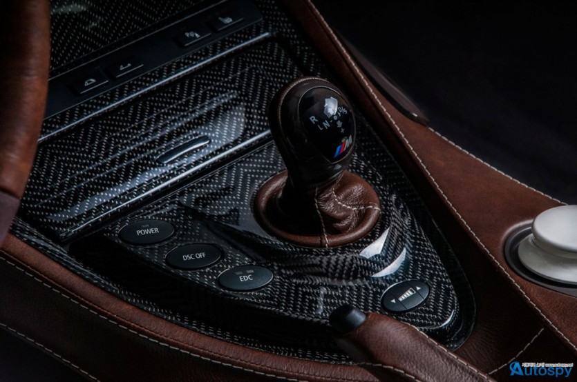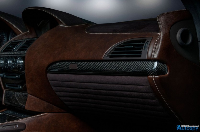 화이트 컬러와 대비되는 실내는 나파 가죽과 브라운 컬러의 알칸타라로 버무려 엔틱한 분위기를 연출했다. 대시보드와 센터페시아는 카본으로 만들었고 계기판도 손봐 특별함을 더한다.