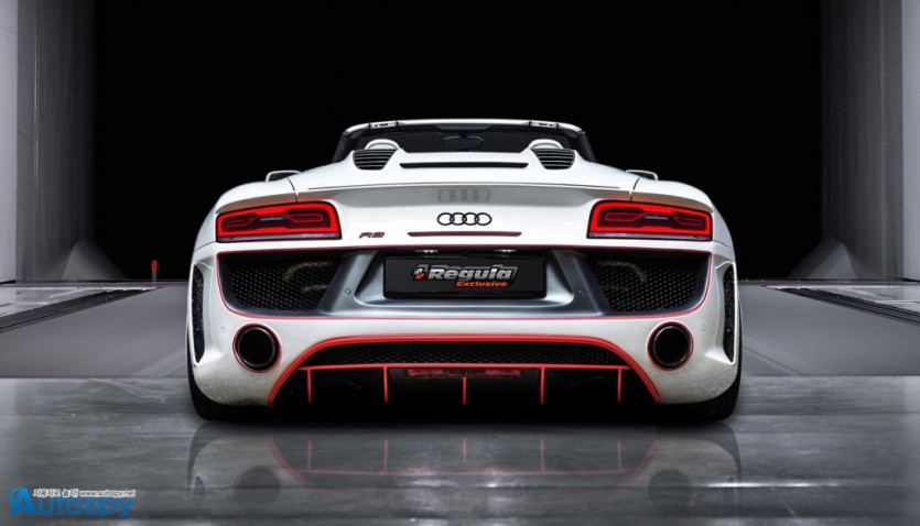 독일 슈베르테에 위치한 튜너 레귈라(Regula)가 신형 아우디 R8 V10 스파이더를 위한 와이드 보디 키트를 선보였다. 7,950유로(약 1,141만원)로 판매되는 제품으로 모두 카본파이버로 만들었다. 옵션으로 스테인리스 배기 시스템을 마련했고 20인치 휠과 앞 265/30 ZR20, 뒤 305/25 ZR20 타이어를 조합했다. 레귈라는 이번 보디 키트를 R8 쿠페에도 적용할 수 있다고 밝혔지만 퍼포먼스 업그레이드 시스템에 대한 대답은 없었다. 기본형 V10 5.2 FSI의 엔진은 최고출력 525마력을 낸다.