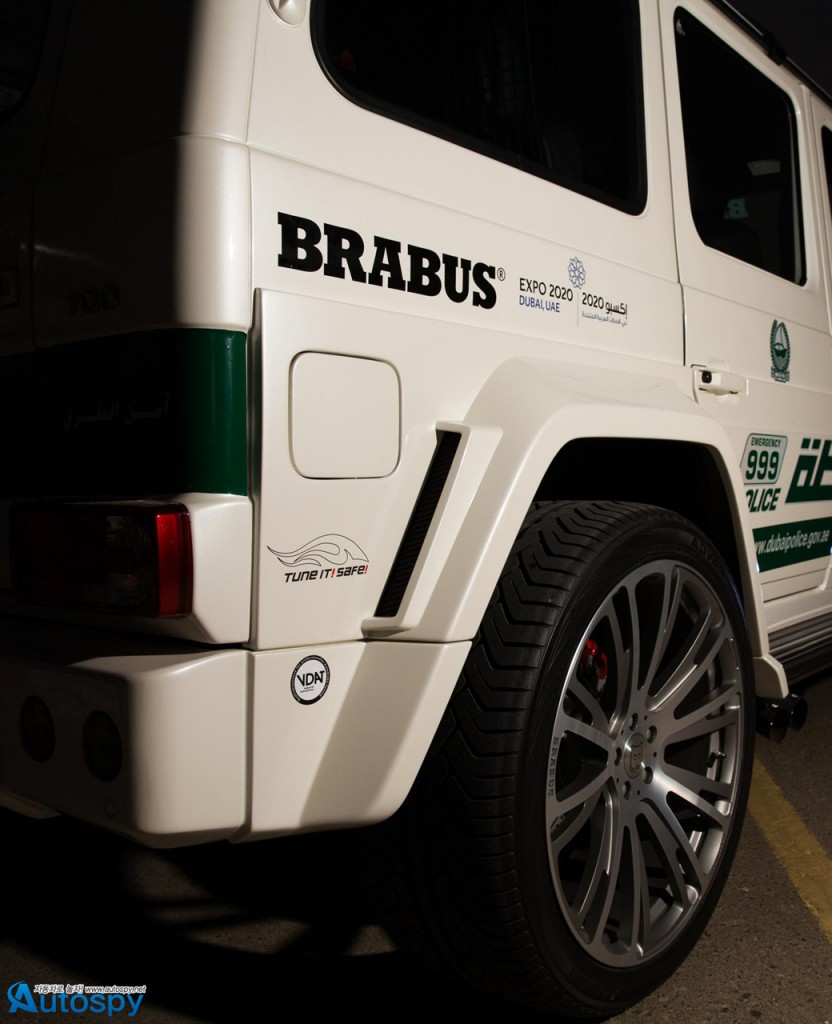 독특한 경찰차를 통해 홍보효과를 톡톡히 보고 있는 두바이 경찰이 이번엔 제로백 4.9초의 몬스터급 SUV를 영입해 눈길을 끌고 있다. 주인공은 벤츠 G63 AMG를 베이스로 개발된 ‘브라부스 B63S-700 와이드스타’로 2013 두바이모터쇼에 모습을 드러냈다.