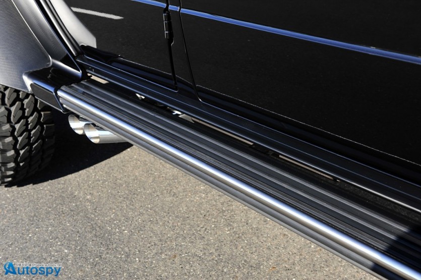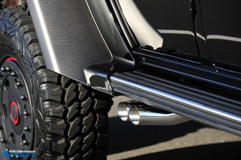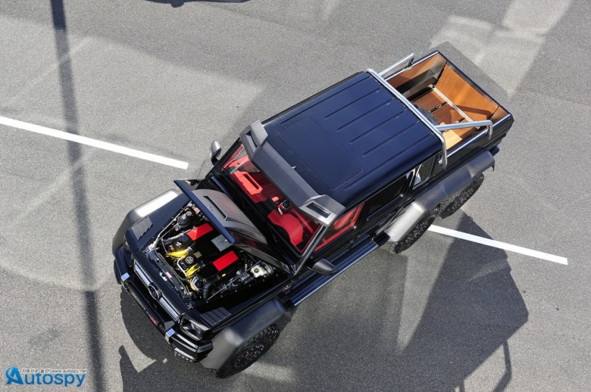 얼마 전 메르세데스 벤츠가 G63 AMG 6X6을 공개해 상남자들을 유혹하더니 전문 튜너 브라부스가 한술 더 떠 B63S-700 6X6을 공개했다. 2013 프랑크푸르트모터쇼에 공개된 브라부스 궁극의 오프로더인 셈이다. 크롬과 카본 파이버로 장식한 블랙톤의 겉모습에 비해 실내의 분위기는 레드계열의 가죽과 알칸타라를 써 정열적인 모습이다.