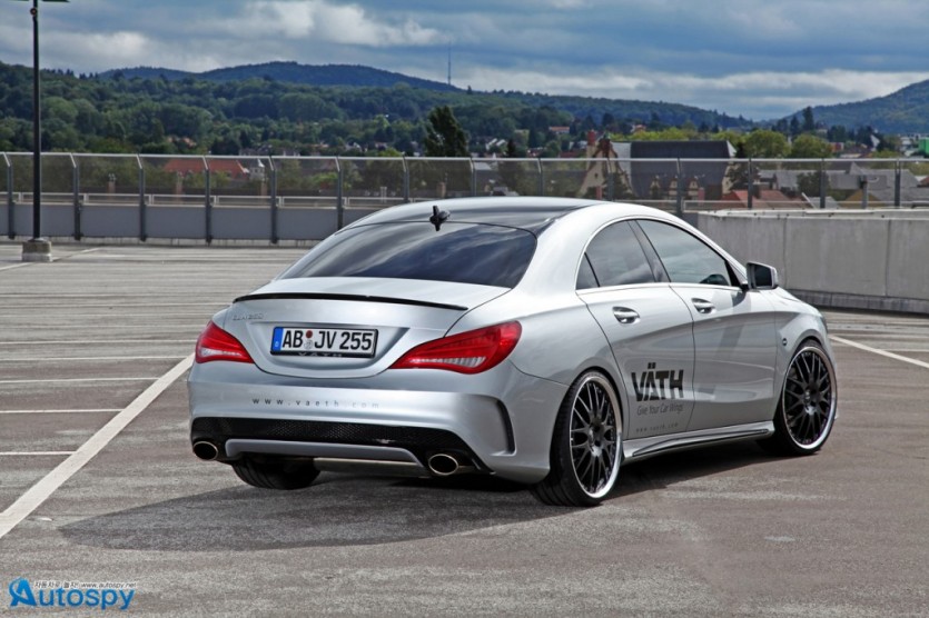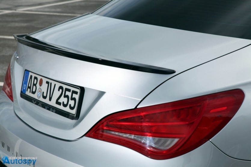 독일 튜너 뵈쓰(Vath)가 벤츠 CLA250 베이스의 컴플릿카 V25를 선보였다. 과격함보다 밸런스를 중시하는 뵈쓰의 특징을 살려 프론트 범퍼의 카본 립 스포일러(1,416유로)와 리어 스포일러(333유로) 등으로 포인트를 주고 전용 3피스 타입의 20인치 휠 및 고성능 타이어(앞 225/30 ZR20, 뒤 265/25 ZR20)를 세팅했다.