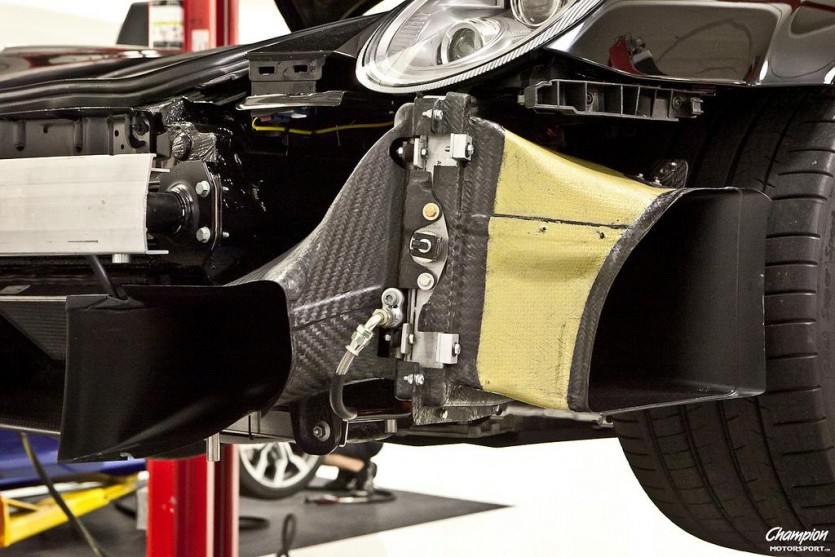 브레이크 시스템의 냉각을 위한 덕트와 휠 하우스 안쪽의 플라스틱도 카본으로 대체했고 RSR 전용의 스웨이 바와 가변식 코일오버 서스펜션으로 하체를 보강했다. 무게를 줄인 마그네슘 휠은 챔피온 모터스포츠가 직접 만든 제품이다.